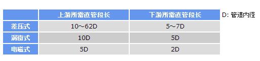 調整流量計的流速分布所需的直管段長度大致如下表所示: